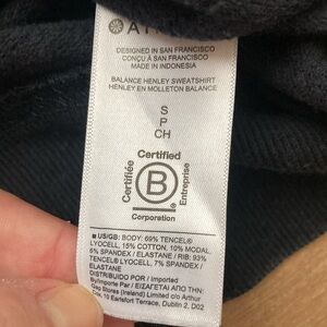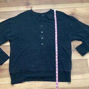 Athleta Balance Henley sweatshirt. Size SP. very good condition -some signs of wash and wear. Some color fade. Measurements materials and care in pics