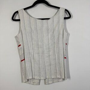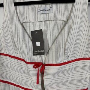 Zino Jordan White Pinstripe Linen Vest Red Tie Detail Size 48 EU Chic Top