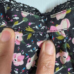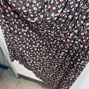 • Black base with pink floral print throughout