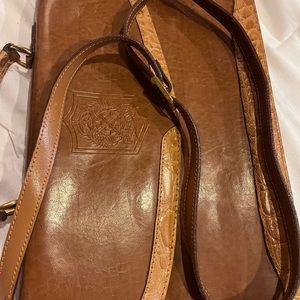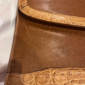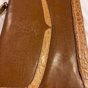 Leather & Crocodile trim with top handle & leather adjustable crossbody strap. 3 inner compartments & a small zip pocket-