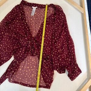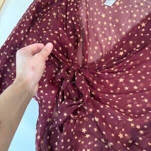 Free People Star Dazed Burgundy Gold Boho Kimono OS Festival Celestial Fairycore