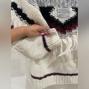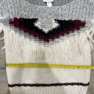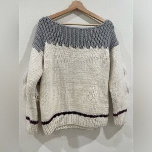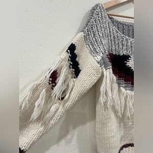 Current/Elliott Women's Rosemary Wool Alpaca Fringe Sweater Grey Cream