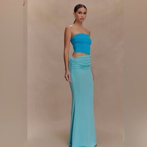 Strapless Blue maxi dress with cutout