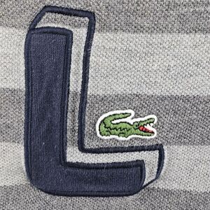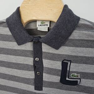 Lacoste Polo Shirt Size 4 Gray Striped Big L Logo Crocodile Outdoors Preppy Men