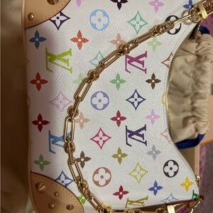 Authentic Louis Vuitton White Multicolor Murakami Boulogne PM Shoulder Bag. Very limited release.