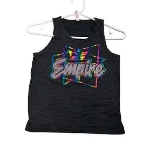 Bella Canvas Kids Charcoal Tank Top with Graphic Colorful Empire Design. Size S