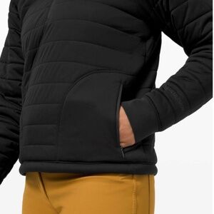Performance half-zip designed for outdoor training. Glyde fabric is water-repellent and windproof. Cinchable hem and zippered exterior pockets. Excellent used condition.