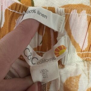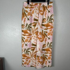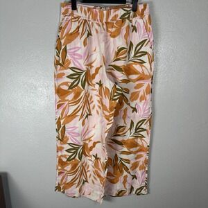 C&C California 100% Linen Floral Tropical Wide Leg Pull On Pants Womens Large