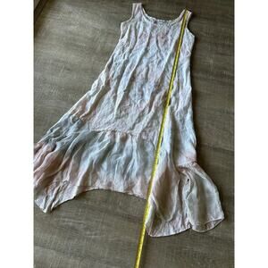 Made in Italy Linen Silk Blend Midi Dress Lagenlook Tie Dye S Asymmetrical Hem