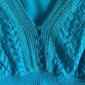 J Glee Womens Babydoll Dress L Aqua Tiered V Neck Lined Beachy Y2K