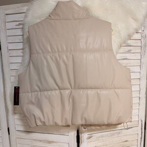 Chic and cozy puffer vest. Ideal for layering. Features a high collar and button closure.