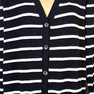 Faded Glory Womens Black & White Striped Cardigan Sweater L (12-14) Button Fron