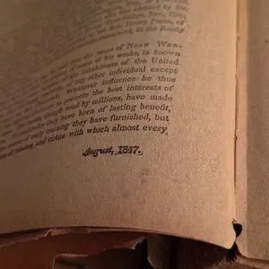 Authentic antique dictionary pages from an 1847 edition of Webster’s Dictionary.