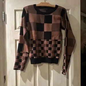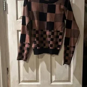 Chic knit set with black and brown pattern. Ideal for stylish outings.