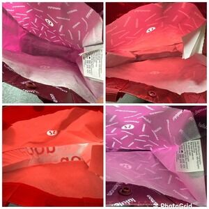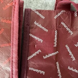 Lot of 4 small Lululemon tote bags. Red reusable shopping bags.