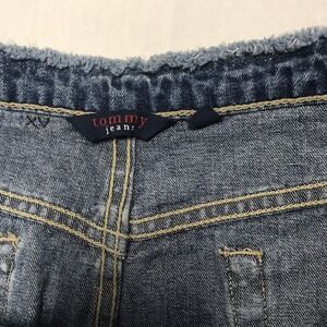 NWT Tommy Hilfiger Sz 9 Denim Mini Skirt Frayed Waist Straight Blue Jean 14.5L. Condition is New With Tags.