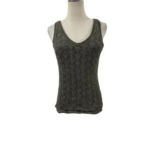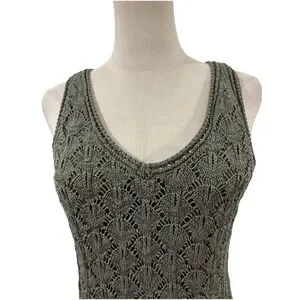 White House Black Market Olive Green Crochet Tank Top Sz M Boho Basic Layer