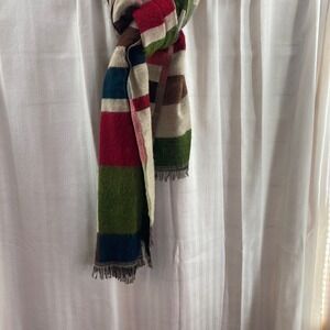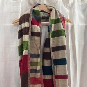 Natura Striped Wool Blend Scarf Shawl Wrap Fringe Beige Red Green Blue Brown