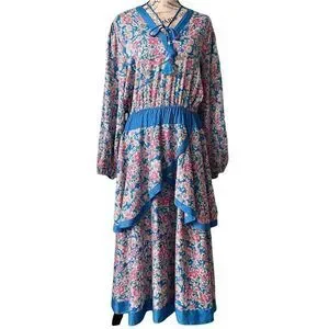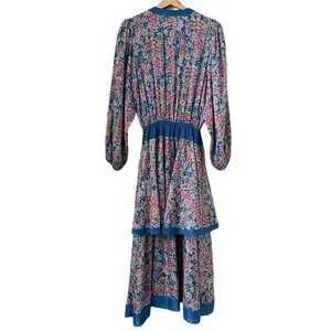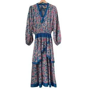 Tags: Luxury, V-neck printed, Spring, Summer, Floral, Vacation, Beach, Wedding, Casual, Bridal, Liberty Floral, Blue Ruffle, Handkerchief hem, Boho, Tiered Dress