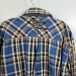 Coogi Heritage Men's Blue Plaid Button Up Shirt Size 2XL 3226-1296