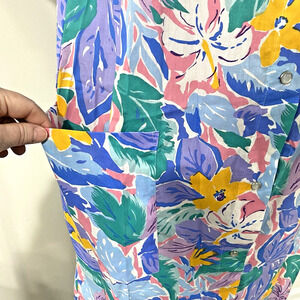 VTG MuMu Movie Star house dress knee length cotton blend multi floral snaps sz M