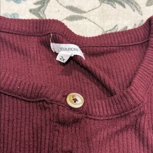 Maurices Maroon Heartland Henley Tee Long EUC
