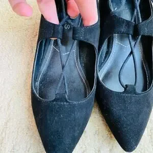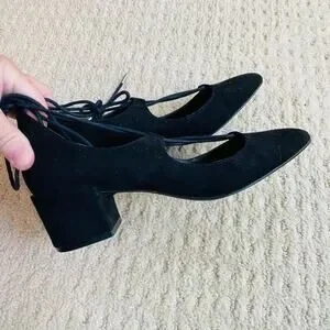 Charles David US size 5M Shoes - Dressy Black faux suede pumps with lace up design that reminds me of Ghillies style. Mid-high block heel for a unique look - pointy toes - these are dressy but could work for a fun casual day too! In excellent pre-owned condition - minor overall wear - no damage or flaws - so cute!