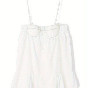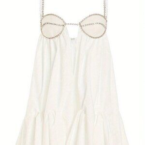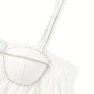 White Casual Women's Spaghetti Strap Rhinestone Cutout Mini A-Line Dress