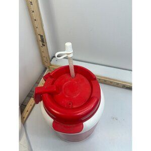 This vintage Coca-Cola Classic drink container is a must-have collectible for any soda enthusiast or Coca-Cola memorabilia collector. Featuring a retro design with the iconic Coke logo and a convenient straw, this container is in excellent condition.