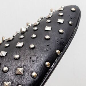 • Black leather upper with silver-tone pyramid and dome studs