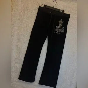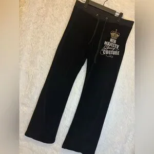 👑 Channel your inner Y2K royalty with these iconic Juicy Couture “Her Majesty Juicy Couture” crown logo velour pants! These classic black lounge pants feature the legendary Juicy crown graphic with sparkly silver lettering that perfectly captures the early 2000s McBling / celebrity off-duty aesthetic. A must-have for Juicy collectors and lovers of vintage glam! 💎