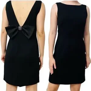 Vintage Dress Mini Little Black Sheath Bow Glam Dainty Coquette Size 10 Medium