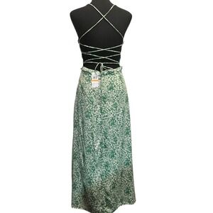 ASTR The Label Green Floral Print Maxi Dress Lace Up Back Coquette Cottage Retro