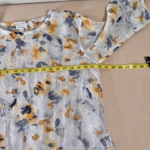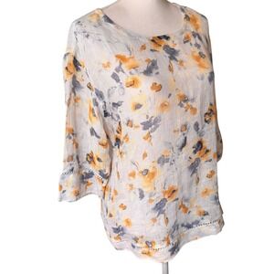 Pure Jill Linen Watercolor Floral 3/4 Sleeve Scoop Neck Sheer Top Women's Size S