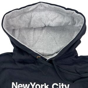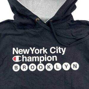 New Champion Men Black Hoodie Logo Printed Long Sleeve Pocket Pullover US M