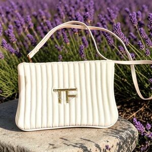 Tom Ford White Quilted Bag with Gold Accent and Tom Ford lip color.