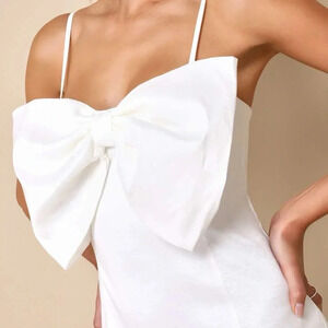 NWOT Lulus Dress Statement Sweetie White Taffeta Sleeveless Bow Midi Dress