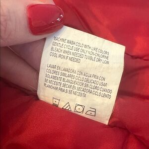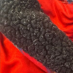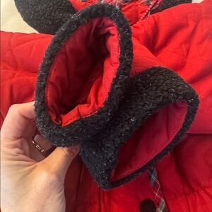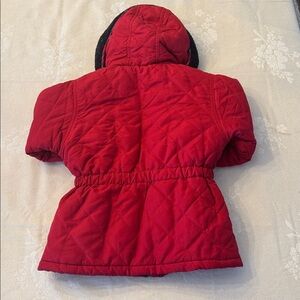 Keep your child warm and stylish with this red quilted jacket featuring a cozy black trim. Perfect for chilly days.
