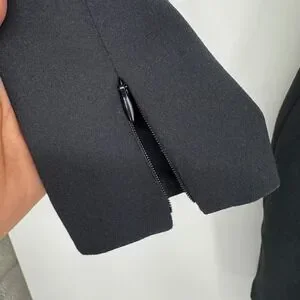 Long sleeve mini dress features a striking heart-shaped cutout at the chest, creating a bold and romantic focal point. Structured with a round neckline and a form-fitting silhouette, this piece is crafted from a smooth crepe-like fabric with a full lining for a polished finish. Discreet zippers at the cuffs and a concealed back zip closure ensure a sleek, tailored fit.