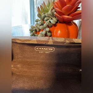 Elegant Coach eyewear case with signature tan monogram design. Ideal for stylish protection. Coach Glasses/Sunglasses Hard Case Coach Logo on Case Snaps Shut. The case is in prestine conditions ✨