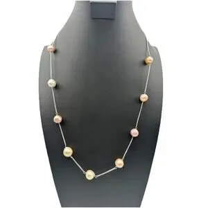 Honora Collection pearl necklace, specifically model J329334000000. It features scattered, multi-colored cultured pearls along a sterling silver chain. Honora specializes in sourcing high-quality freshwater pearls.