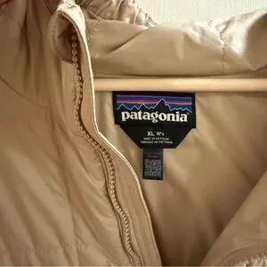 Beige quilted vest with zipper. Ideal for layering. This vest is oversized and is ideal for layering. The zipper comes down from the top and bottom (designed to do so). No tears or rips, just worn a handful of times before wanting to size down.