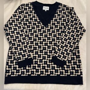 Leo & Ugo Paris Navy and White Floral Patterned Women's Sweater, sz XL