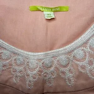 Gianni Bini Light Pink Sleeveless Blouse with Embroidered Neckline