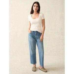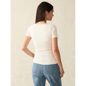 Faherty Legend Rib Scoop Neck Tee Womens Small Beige Egret