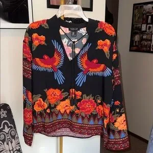 Rachel Zoe Black Blouse with Vibrant Embroidery