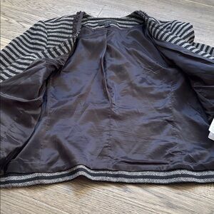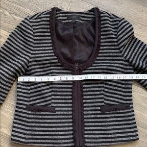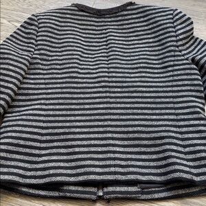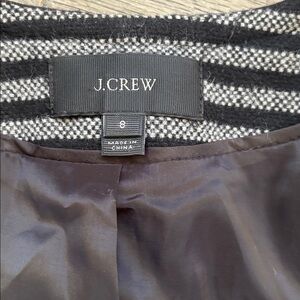 J. Crew| Black Grey Striped Tweed Fringe Trim Scoop Neck Zip Up Blazer Jacket 8