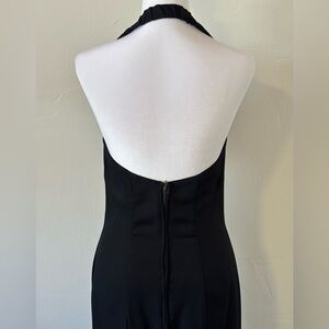 Vintage Zum Zum black evening dress featuring a halter neckline and delicate floral embellishments on the bodice.