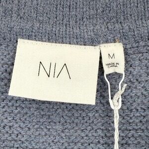 Keywords: NIA, sweater, knit, cropped, collared, pullover, long sleeve, gray, blue, womens, medium, M, casual, contemporary, stylish