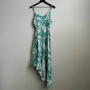 MINKPINK Collins Asymmetrical Hem Midi Dress in Green Palm Print Size Medium